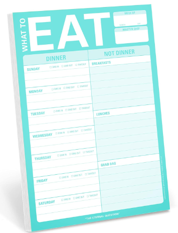 Nothing is more frustrating than trying to figure out what you will eat every day. If you want to save money, eat healthier, and stop eating cereal for dinner every night, the Knock Knock What to Eat Pad is for you. This meal planner has a clear weekly layout to plan meals for breakfast, lunch, and dinner. Plus, it includes a grocery list section, so you stop buying unnecessary items when you go grocery shopping. Your meal plan will only take seconds to make. As a result, you won’t starve because you’ll know what to eat each week.